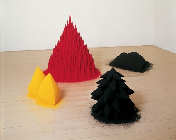 Anish Kapoor made "To Reflect an Intimate Part of the Red" using pigment; you can almost smell its earthy scent. The way the pigment lies on the floor, not quite contained, suggests a process of becoming, like a drawing that's still in progress. The texture is so interesting; it makes me think about the weight of color, how it sits there, almost daring you to touch it. The forms are simple, geometric, but the pigment gives them a fleshy, organic quality. Look at that big dome of red; it’s made of tiny balls, creating a landscape of tiny shadows. It's both inviting and forbidden, like a field of poppies. The forms create an atmosphere, but one that is uncertain; the geometry is reminiscent of Sol LeWitt, but much more ephemeral and alive. It’s like Kapoor is saying, “Here, I’ve made something solid out of something that wants to scatter.” And in that tension, there's an openness, a space for us to project our own interpretations.