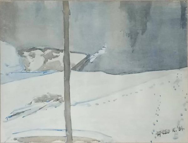 Alfred Freddy Krupa made this small watercolor painting, Kupa River under the Snow, on paper, and what I like about it is how simple it is. It’s about reduction, right? How little can you do and still say something powerful about a place, a moment, a feeling? The blues and grays are so subtle, they almost disappear into the white of the paper, mimicking the way snow softens and simplifies a landscape. There’s a stillness here, a quiet that feels really true to a winter scene. Look at the way Krupa uses these transparent washes; it’s not about heavy, descriptive marks, but more about suggestion. It reminds me a bit of some of Agnes Martin’s subtle abstractions, where the real subject is more about atmosphere and light than any specific thing. I think art is all about that conversation, where artists pick up on each other’s ideas and run with them in new directions, and this work is no different. It leaves plenty of room for us to bring our own experiences, our own feelings about winter and stillness, into the mix.