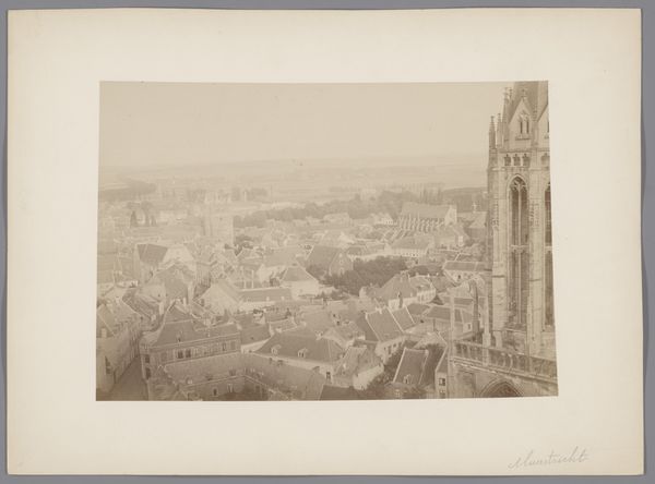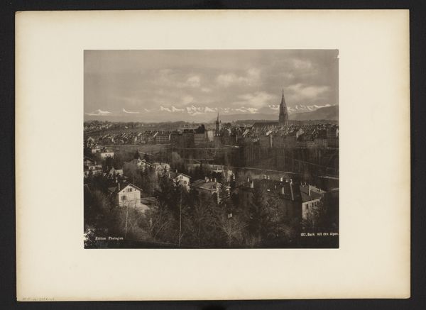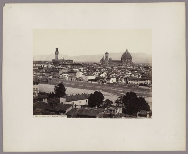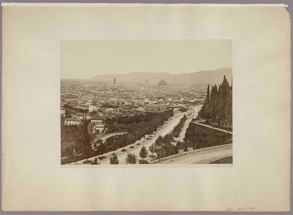 This photograph, "Gezicht op Florence met de Santa Croce" was created by Fratelli Alinari. It's a view of Florence, Italy, captured through the lens and preserved on paper using photographic processes. Photography, like other forms of reproduction, changed the nature of art and documentation. The photograph is not an exact mirror of reality, but an interpretation shaped by the photographer's choices—framing, lighting, and printing techniques. The Alinari brothers were pioneers in this regard, documenting Italian art and architecture on a commercial scale. Consider the labor involved: setting up the camera, developing the image in a darkroom, and making prints. The photograph democratized the image, making views of famous places and artworks accessible to a broader public. This challenges traditional notions of artistic skill and originality. By focusing on the means of production and social context, we can appreciate the photograph not just as a view of Florence, but as a cultural artifact that reflects the changing landscape of art, labor, and consumption in the modern world.