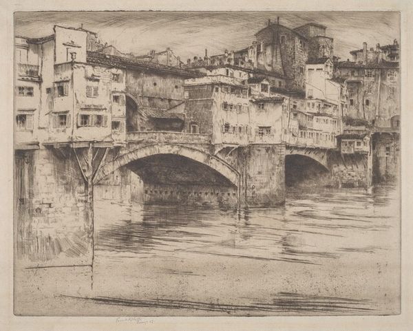 Donald Shaw MacLaughlan made this etching, "The Rialto", with ink on paper. Look at how the marks build up, a real density of lines pulling together to conjure the image. This additive process, where the image emerges from the build-up of detail, mirrors the real, lived process of building a city, stone by stone. The etching captures a scene brimming with daily life, but it’s the texture that really speaks to me. See the contrast between the dense cross-hatching under the bridge and the sparser lines suggesting the sky. It’s like feeling the cool, damp air near the water and then turning your face up towards the sun. Check out how MacLaughlan uses different densities of marks to create light and shadow – a real masterclass in monochrome. This reminds me of Piranesi, but with a softer edge. Ultimately, art’s about seeing what others have done and adding your own voice to the conversation. MacLaughlan does just that, offering us a fresh perspective on a timeless scene.