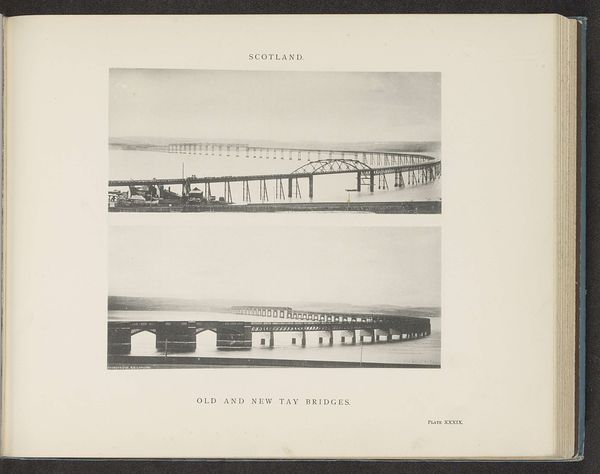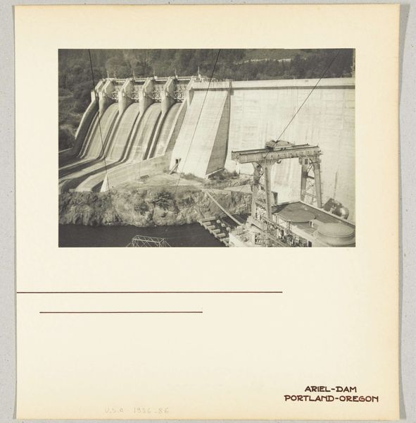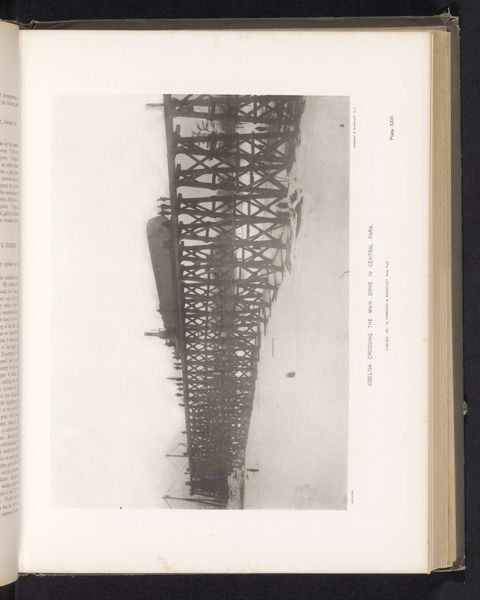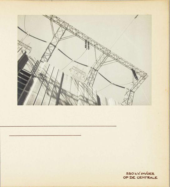 Curator: Looking at this photograph from 1936 titled, “Oakland Bridge, San Francisco, Verenigde Staten: constructie,” what’s your initial reaction? Editor: It feels like being swallowed by geometry! All these metal girders slicing the light… I can almost feel the wind whipping around. Makes you a little dizzy, doesn't it? Curator: Indeed. The photographer, Wouter Cool, is clearly interested in form here. Observe the interplay of the strong, dark lines of the bridge's skeleton against the flat, ethereal sky. The composition emphasizes structure through repetition and contrasting tonal values, all pointing to a Precisionist sensibility. Editor: Totally. It’s like the bones of a giant metal beast rising from the water. Cool, in more than one way! There’s something… cold about it, too. Maybe because you’re focusing on this huge industrial achievement, and sort of removed from all the hustle and bustle it must've been meant for. Does that make sense? Curator: Yes, the emotional detachment aligns perfectly with Modernist principles. Cool focuses not on the bridge as a route of transit but on its inherent geometry as the subject matter. The lines, angles, and the contrasts—it's almost an abstract rendering, stripped of human presence, but suggestive of great engineering and powerful aesthetic impact. Editor: Right! It's the *idea* of a bridge. Not just some place to get from one side to the other. The shadows are so important, they create a whole new layer. They stretch and multiply all the lines. Do you think Cool intended this abstract shadow-play as the key visual motif? Curator: The sharp focus across the framework allows the shadows to become integral to our appreciation, yes. Through them, the photographer exposes us to an industrial cityscape in a manner devoid of sentiment. A photograph to inspire contemplation. Editor: Contemplation it is. Staring at this thing long enough you can start wondering about every worker, every rivet, the sheer effort…then I look back up at the perfect, cold lines, and bam!—art strikes again. Curator: A perfect encapsulation of its modernist roots, presenting industry in terms of pure formal expression, highlighting form, line and shadow in a carefully arranged geometric abstraction. Editor: Gives you a new kind of respect, doesn't it? Thanks Wouter Cool for opening our eyes, or rather rearranging the view from our eyes...