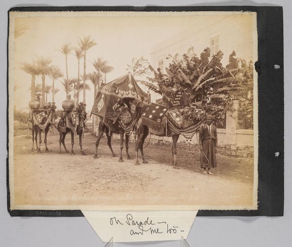 This photograph by G. Lekegian & Co. in Cairo presents a moment suspended in time, dominated by symbols of power and tradition. The carriage, drawn by two white horses, is guarded by two armed figures. These men carry spears, symbols deeply rooted in human history. Since antiquity, the spear has been a weapon of war and emblem of authority. As a means of defense it speaks to a primal human need for protection, but also the control of space and resources. The figures flanking the carriage remind us of similar escorts found in ancient reliefs. In the processions of pharaohs, and even in the retinues of Roman emperors, armed guards ensured safety and conveyed status. Across millennia, the need to protect figures of power manifests itself in this recurring motif. Such iconography taps into a collective memory, conjuring feelings of security and imposing power. Consider the cyclical nature of these symbols and gestures, echoing across time, reappearing and shifting in form, yet retaining their fundamental essence.