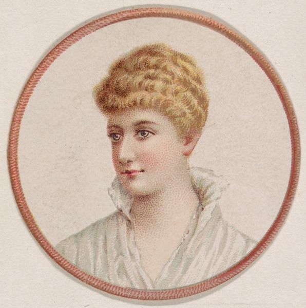 This is a portrait of a woman from the Novelties series, created by Kinney Brothers Tobacco Company. These small cards were included in cigarette packs, a marketing strategy that capitalized on the burgeoning tobacco industry of the late 19th century. The image presents us with a woman whose demure gaze and delicate features embody the era's ideals of femininity. She wears a pearl necklace and a dress with a high neckline, indicative of the period's restrictive social norms for women. Yet, the very existence of this portrait in a space dominated by male consumption raises questions about the evolving role of women in public life. The card itself becomes a symbol of cultural exchange and negotiation, reflecting and shaping societal perceptions of beauty, gender, and consumerism. It’s a poignant reminder of how deeply ingrained these images are in our collective consciousness, inviting us to reflect on the complex interplay between commerce, representation, and identity.