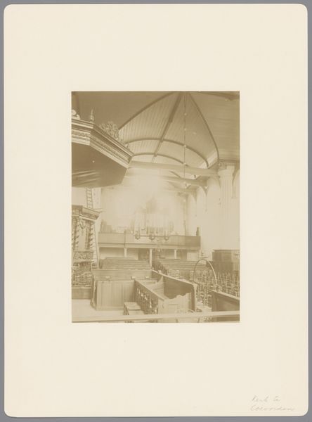 This photograph, taken by W.T. Uhlenhuth, captures the interior of the Deli Courant store in Medan, offering a glimpse into early commercial spaces. The image showcases glass display cases filled with meticulously arranged silverware, positioned centrally, drawing attention to the array of goods. Behind, shelves laden with books create a textured backdrop. The photograph's sepia tones cast a warm light over the scene, emphasizing the materiality of the goods on display. Consider the context: Medan, a city shaped by Dutch colonial influence. The act of photographing the shop, filled with both news and silverware, speaks to the intertwining of information, luxury, and social status in the colonial context. The image subtly nods to the labor and industries required to produce both print media and crafted goods, reflecting the economics of the time. By examining this image, we delve into the material culture of the past, blurring the lines between art, commerce, and the everyday lives of people within a specific time and place.