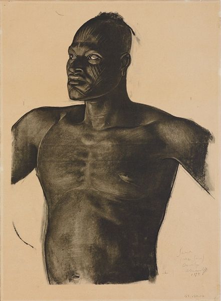Peter Blake made this piece, Ebony Tarzan, with paint and image appropriation, layering cultural icons and personal vision. It's fascinating how he navigates the space between representation and process. The dark background and the model's skin, rendered in a tonal palette, create a depth that contrasts with the flat, graphic quality of the text and colored blocks below. The paint seems thinly applied in some areas, allowing the texture of the surface to peek through, while other strokes appear more deliberate, building up the form of the figure. Look at how the light hits the model's chest; it's not just about replicating form, but about the sheer pleasure of applying paint, of seeing how colors interact and create form. Blake seems to be in conversation with artists like Andy Warhol, who also blurred the lines between high and low culture. Like Warhol, he embraces the ambiguity of images, inviting multiple interpretations and challenging our assumptions about art and representation.