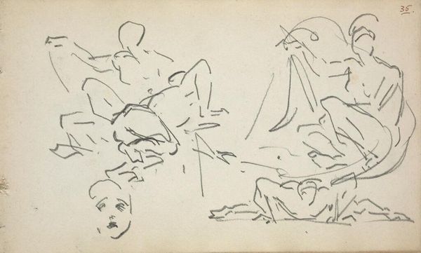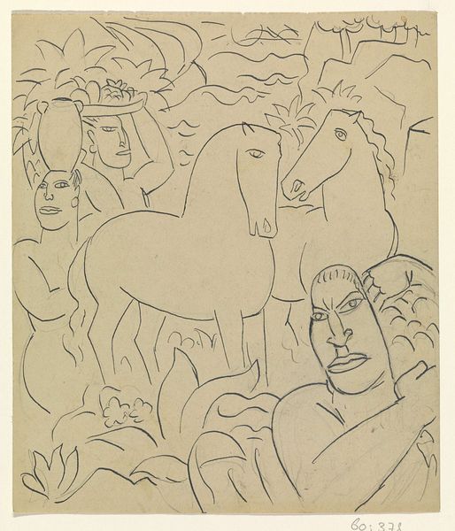 Henri Matisse made this sketch of figures in a landscape with a pen, letting his hand move with a fluidity that just sings. It's all about the process, you know? The way he lets the line define form, but also evaporate into pure gesture. Look at the figure on the bottom left, reclining back, arms behind the head. The line is so casual, almost careless, yet it captures the pose perfectly. It's not about detail, it's about suggestion. It’s about the essence of a body at rest. The negative space becomes just as important as the drawn figure. Matisse’s constant exploration of line and form makes me think of Picasso, another master of reduction. But where Picasso is angular and sharp, Matisse is all curves and flow. And that’s what art's about, right? A conversation, an ongoing exploration of what it means to see and feel. It's about embracing the beautiful ambiguity of existence.