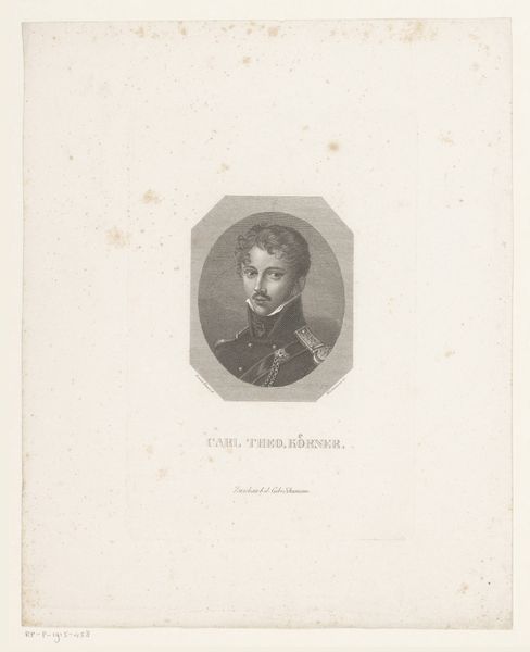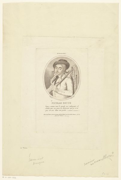 Jean Marie Leroux created this portrait of Jacques-Louis David using engraving techniques. The somber grays and precise lines lend a neoclassical formality to the print. David is framed within an oval, an established convention for portraiture, yet the arrangement of symbolic objects disrupts any straightforward reading. Note how Leroux positions laurel wreaths, a palette, and brushes around David's bust. These are not mere decorations. They act as signs, emblems of David's artistic and political significance. This deliberate layering of symbols invites us to decode the portrayed subject. The neoclassical style, known for its order and clarity, here destabilizes into a complex interplay of representation and symbolism. Consider how the texture and fine detail achieved through engraving enhance the overall effect, turning a simple portrait into a statement about art, power, and representation. In the end, the print challenges viewers to decode its visual language, acknowledging that meaning is constructed through a complex interplay of form and content.
