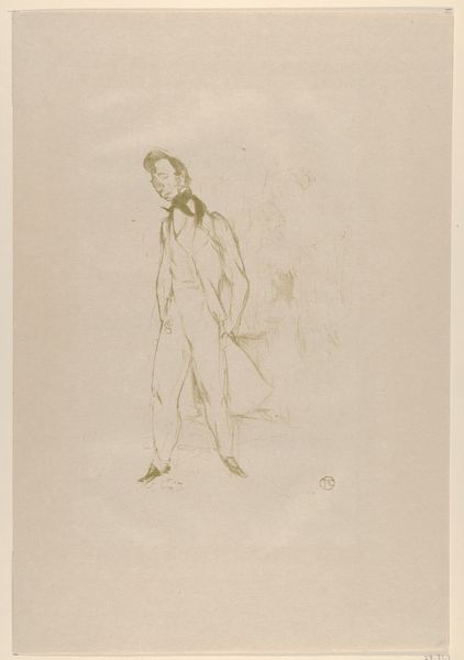 Toulouse-Lautrec made this work on paper, titled Adolphe ou Le Jeune Homme Triste, with a pencil or crayon, sometime in the late 19th century. The strokes are light, airy, almost like he was sketching a ghost. It's all about capturing a mood, a feeling, you know? What I really get into is the scratchiness, the texture of the lines. There’s this feeling like he’s not trying too hard, which, paradoxically, gives it so much of its charm. Look at the way he suggests the folds of the suit, the way the figure seems to sag and droop. There’s a lightness of touch, a sense of immediacy and spontaneity. It reminds me a little bit of some of Degas' drawings, that same looseness, that focus on capturing the ephemeral moments of modern life. But Lautrec adds this layer of melancholic wit, a touch of the absurd. And that, my friend, is what makes art so endlessly fascinating – the way it holds space for ambiguity, for the things we can't quite put into words.