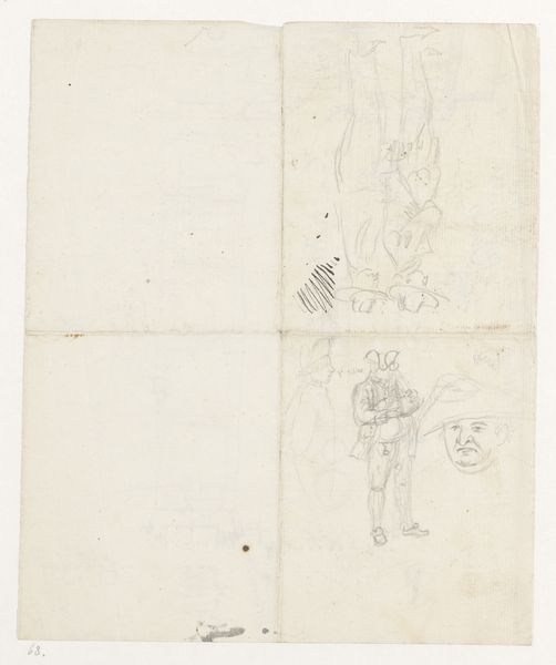 Editor: Here we have John Flaxman's "Sheet of Figures Studies," a graphite and pencil drawing on paper. What strikes me is the sheer number of figures, almost like he's exploring every possible pose on a single sheet. What do you see in this seemingly simple practice? Curator: Well, precisely that – practice. We often forget to look at the labor inherent in producing what we deem "high art". Flaxman's sheet reveals the raw material: graphite, paper, the physical act of sketching. Think about the availability of these materials at the time, and who had access to them. Editor: So, the accessibility of materials shapes artistic creation? Curator: Absolutely. This wasn’t oil paint on canvas, destined for a wealthy patron. This was a study, probably for his own purposes. The medium itself implies a different context of production and consumption. It asks us, where was this sheet made, for whom, and by whose hand? Editor: That’s a really interesting point. It almost democratizes the process. I guess, normally, we might only consider a finished painting. Curator: Precisely. These rapid studies, almost throwaway in their appearance, demonstrate a commitment to the craft itself. What is the significance of choosing such accessible media for these exercises? Could we interpret it as a social statement? Editor: I suppose by focusing on the paper, the graphite, and the labor, it reframes our understanding, right? We can see beyond just the 'art' and focus on the human and material aspects that enabled its creation. It almost feels like a glimpse behind the curtain. Curator: Indeed. And, in doing so, perhaps challenges our notions of value and artistic production. Editor: Thanks! Thinking about the materials and production like this gives a completely different lens to the work.