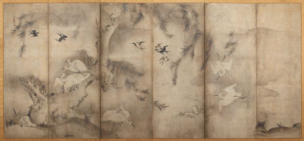 This panel of “Orchids and Bamboo” was painted by Tsubaki Chinzan in 19th-century Japan, using ink on paper. The very concept of ink painting directs our attention to the material at hand: carbon, processed to a fine pigment and then applied in gradations of tone. The work's visual effect hinges on the artist’s control of this medium, varying from the lightest wash to dense, saturated blacks. Notice how the texture of the paper absorbs and diffuses the ink, creating a soft, atmospheric quality. The artist has expertly used a brush, likely crafted from animal hair, to capture the delicate forms of the orchids and the resilient strength of the bamboo. This interplay of materials and making is critical to understanding the deeper cultural significance of the work. Ink painting was traditionally a practice that demanded both technical skill and deep reflection, uniting the hand, eye, and mind. Ultimately, by foregrounding the agency of materials and the skill involved in manipulating them, the painting transcends mere representation.