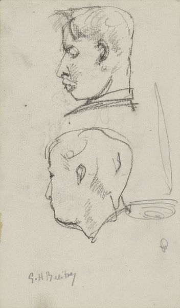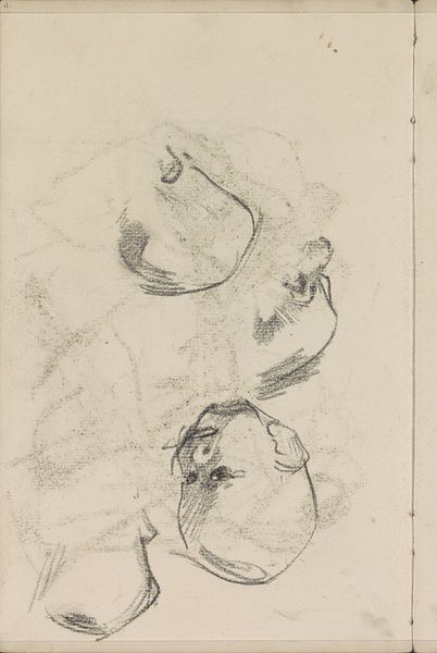 Curator: This is George Hendrik Breitner’s “Kinderhoofden,” created around 1898. It’s a delicate pencil sketch on paper, currently held here at the Rijksmuseum. Editor: It’s captivating! These fragmented glimpses of children's faces, almost ghostlike. The raw quality of the pencil work is especially poignant, almost like a memory fading. Curator: Indeed. Breitner had a particular fascination with capturing fleeting moments of everyday life. Here, he focuses on the innocence and vulnerability often associated with childhood. Notice how the loose lines suggest movement, as though he's sketching from life, capturing fleeting expressions. Editor: Absolutely. And the choice of pencil enhances that sense of immediacy. It is an accessible and almost ephemeral medium that lends itself well to capturing quick impressions. I’m thinking of the availability of paper and pencil—they are easily carried to many locations in the city—compared to hauling around paints or clay. Curator: I agree. It’s worth noting Breitner’s association with Impressionism; though largely self-taught, the techniques he adopted emphasized spontaneity. What meanings can be discerned by viewing children? Childhood imagery is typically laden with ideas around innocence, potential, even nation-building. How do we reckon with these sketches then? Editor: I find the lack of finish quite striking. These aren’t idealized representations, but rather working sketches, showing us Breitner's process. These types of raw sketches grant such rare insight into his technique and thinking! It is all about his engagement with materials and his process, making the everyday accessible. Curator: The unfinished nature makes them feel less constructed, closer to genuine emotion. Breitner often employed photography, though, to capture initial poses and later work on details back in the studio. Does that awareness alter your view? Editor: Not really, knowing the artist employed photography offers insight into his method. This emphasizes the link between art and technology, how new processes are assimilated. Curator: Well, considering how prevalent child imagery became for representing both national identity and innocence, I can't help seeing a social context implied in this choice of subject by the artist, Breitner. Editor: Interesting how that simplicity and lack of embellishment are tied into complex social questions around the function of art itself! Curator: Looking closely today, that’s exactly the lingering resonance of this seemingly simple work for me. Editor: I appreciate how the choice of materials emphasizes access. Thanks for your analysis!