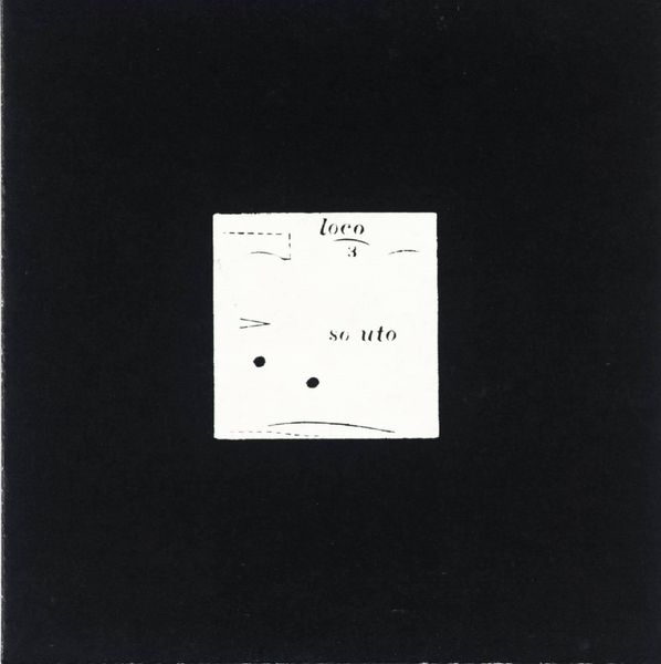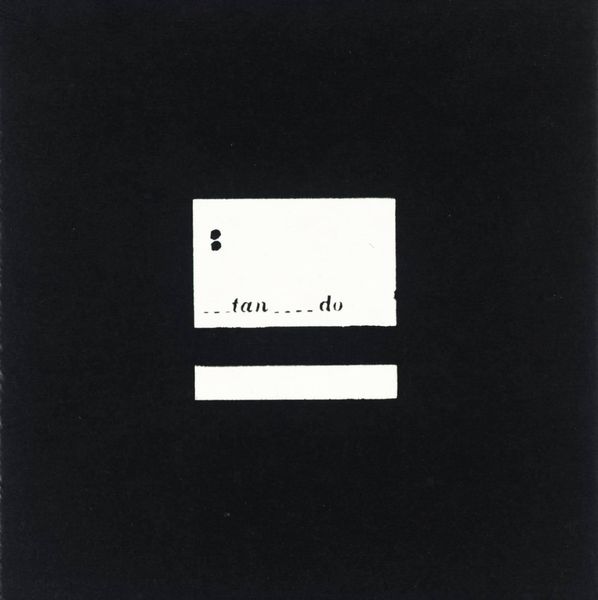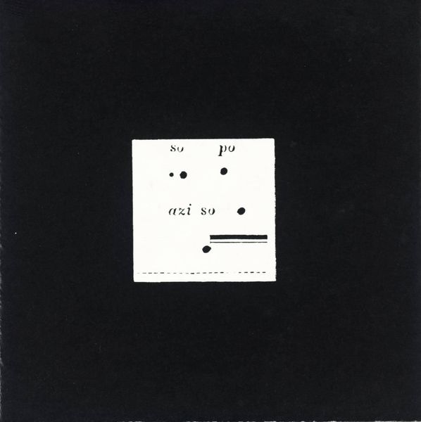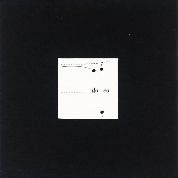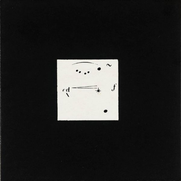 Curator: Let’s consider this untitled work by Ian Tyson, found in the Tate collections. My immediate impression is one of stark austerity. Editor: Its power lies in the language of musical notation. The 'do' hints at a beginning, a starting point. Curator: Precisely! The composition centres around a pure geometric reduction: a bright square against a field of black. The elements create a simple, bold order. Editor: The musical symbols feel familiar and almost talismanic, hinting at harmony and rhythm even in silence. The 'f' suggesting 'forte', an intensity. Curator: Observe how the crisp edges of the central square emphasize the flatness of the picture plane. It is a study in pure form. Editor: But it’s not devoid of meaning. Music is universal, and this image feels like a secret invitation to join in a silent song. Curator: An intriguing synthesis of the concrete and the symbolic, wouldn't you say? Editor: A compelling blend, leaving much to contemplate.