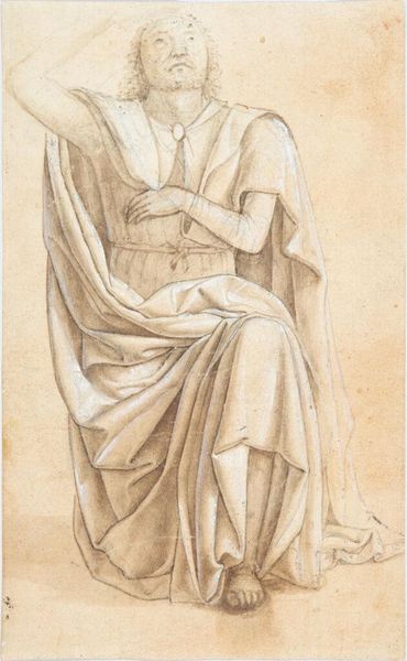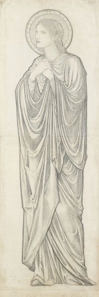 Edward Burne-Jones created this drawing of Ariadne with graphite and colored chalk, exploring a classical subject through the lens of Victorian aesthetics. The choice of materials here speaks volumes. Graphite, a humble material, is used to build the figure's form, while colored chalk adds subtle warmth to her drapery. This combination isn't about grand gestures but quiet refinement. Burne-Jones’s method recalls the Italian Renaissance practice of *disegno*, which privileged drawing as a foundation for all artistic creation. It emphasizes the intellectual labor involved in design, as a counterpoint to the physical labor of production, neatly aligning with the Arts and Crafts movement's ambition to reunite art and labor. The soft, flowing lines create a dreamlike quality, emphasizing the inner life of Ariadne. This focus on emotion and interiority over outward display reflects a broader shift in Victorian art towards psychological depth. By choosing drawing, a medium often seen as preparatory, Burne-Jones elevates the status of craft. He invites us to appreciate the skill and thought behind the final product.