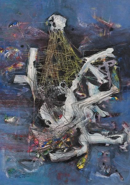 Jakob Weidemann created "Den Gale" using oil paints, a traditional medium often associated with fine art. Weidemann's application of paint is thick and textured, creating depth, adding a tactile quality to the canvas, and allowing the colors to blend, blurring the lines between representation and abstraction. These are not the smooth surfaces of the academy, but rather a celebration of the medium itself. The gestures and energy of the artist are very present. In fact, there's almost a visceral quality to the surface, which is built up with layers of strokes. Consider how this approach challenges traditional notions of painting as a purely visual medium. Weidemann makes us aware of his own labor, in this very active painting, inviting us to engage with the work on multiple levels. By emphasizing the materiality of the paint, Weidemann elevates the act of painting to an active display.