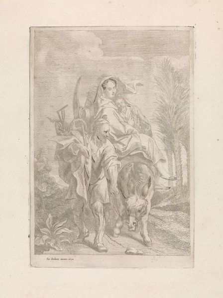 Editor: So, this is "Lente," or "Spring," by Frederick Bloemaert, sometime between 1632 and 1670. It's an engraving. It gives me this… nostalgic feeling? Almost like a staged memory of simpler times. What do you see in this piece? Curator: I see a deliberate construction of pastoral ideals meant to appeal to a specific, probably urban, audience. Notice the idealized shepherd boy. His pose isn't just about looking back; it's a calculated glance toward the viewer, inviting a certain sentimentality about rural life. Does this strike you as authentic, or is it presenting a crafted vision? Editor: It definitely feels crafted. Like, a romanticized idea of what country life *should* be, not necessarily what it *is*. Was that a common theme in art back then? Curator: Precisely. Think about the patrons of Bloemaert's prints. Likely members of the rising merchant class in Dutch cities. They're acquiring these images not necessarily for documentary purposes, but to create a sense of cultivated gentility and a connection to a 'natural' past. It reinforced social hierarchies and a yearning for simpler values within an increasingly complex urban world. What does the inclusion of farm animals tell you about the values the piece promoted? Editor: Hmm... Maybe a sense of prosperity and the harmony between people and nature. Thanks for this perspective; I see it much more clearly now. Curator: And I appreciate your insightful observations about its nostalgic feeling. Thinking about art's place in the broader culture definitely sheds new light on these images, doesn't it?