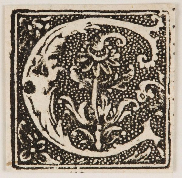 Editor: Here we have "Letter G," by an anonymous artist. It looks like a woodcut or similar printmaking technique. It feels very medieval to me, almost like something you'd find in an illuminated manuscript. What is the social and cultural impact of this artwork? Curator: Well, these initial letters served to mark divisions in a text, adding visual cues and hierarchy. The decorative "G" elevates the text, creating a sense of importance and inviting the reader into the content. Think of how powerful literacy and access to information were, and who controlled it. Editor: So, it's not just decoration, it's about power and control of information? Curator: Exactly. How was this image used and disseminated? Who had access? It reflects the social structures of its time, right? Editor: I never thought about it that way before. Thank you! Curator: Me too!