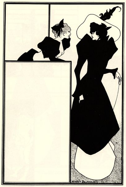 Aubrey Beardsley created this pen and ink drawing, Ballet of Marionettes III, during the height of the Aesthetic Movement in England. The movement emphasized aesthetic values over moral or social themes, seeking art for art's sake. Here, Beardsley brings a theatrical flair to his exploration of artifice and identity. The figures, stylized and poised, evoke a sense of performance, inviting viewers to question the boundaries between reality and constructed roles. The artist toys with themes of gender and power, creating a world where appearances are deceiving, and identities are fluid. Beardsley once stated, "I have one aim – the grotesque. If I am not grotesque, I am nothing.” The exaggerated forms and dramatic contrasts of black and white, are visually striking and emotionally evocative. Beardsley challenges societal norms by creating a space where beauty and the grotesque collide. His bold and unapologetic style continues to invite us to reflect on how we construct and perform our own identities.