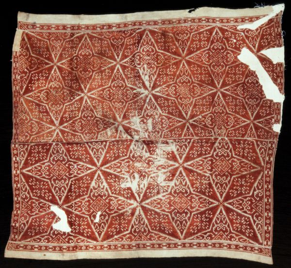 Editor: This is “Fragment” by Grand Frères, dating back to 1809. It's a textile piece housed at the Metropolitan Museum of Art. I find the faded floral designs quite captivating. What do you see in this work in terms of its cultural or historical significance? Curator: It's fascinating, isn't it? Textiles, especially fragments like this, offer a glimpse into the socio-economic fabric of their time. Consider that this piece was created during the Napoleonic era; the floral motifs, potentially mass-produced, reflect changing consumption patterns among rising bourgeois. How do you think its function as potentially a decorative element impacted its value compared to say a tapestry made at court? Editor: That’s interesting. I guess tapestries at court are loaded with symbolism tied to political power, whereas this might be more about personal taste or following trends. So, the patterns aren't just pretty designs but indicators of wider social shifts? Curator: Precisely! The very existence of such patterned fabric suggests developing industries. The choice of red, the quality of dye…were these materials available to broader society, or were they still luxuries that communicated certain aspiration? The 'Fragment’ isn't simply a visual delight; it encapsulates evolving tastes and economies. Editor: So by studying what survives in museums, can reveal something of popular trends? Curator: Exactly, popular consumption is intrinsically connected to cultural significance! How tastes are constructed and become markers of social identity in any period. Think about contemporary fashion. What could that tell us? Editor: Hmm. This really makes me rethink decorative arts. I hadn't considered their political and economic context so deeply before. It goes beyond aesthetics, doesn't it? Curator: It absolutely does. Everyday objects often tell the most profound stories. Studying them offers a richer, more nuanced understanding of history.