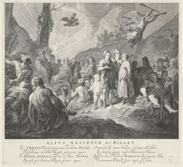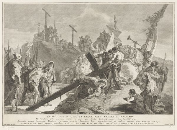 Curator: Here we have a work entitled “Opwekking van Lazarus,” which translates to “The Raising of Lazarus,” created before 1700 by Richard van Orley. Editor: My initial impression is that it’s a flurry of line work creating a dramatic, almost theatrical scene. The textures seem very varied for what I imagine is an ink drawing. Curator: Indeed. Van Orley, working within the Baroque tradition, situates this miraculous event—Lazarus being raised from the dead by Jesus—within a society deeply structured by religious beliefs. Lazarus becomes symbolic, not just of divine power, but of the potential for societal transformation and perhaps the promise of salvation from the oppressive structures of the time. Editor: Looking closer, there is definitely an emphasis on contrast, which contributes to this feeling of high drama. Notice how the artist employs denser hatching in the shadowed areas to build mass. Then look how, in the areas where light touches the figures, there's much more space in the mark-making creating this visual vibration, or aura. Curator: It’s crucial to note how gender dynamics also play a role. The narrative often overlooks the role of Lazarus’s sisters, Mary and Martha. These women, central to the story, represent devotion and faith, challenging the patriarchal norms of their era, acting almost as an undercurrent of resistance to expected roles and behaviors within a deeply religious social fabric. Their grief and subsequent joy underscore the emotional intensity of the scene, providing a counternarrative to the traditionally male-dominated religious interpretations. Editor: From a formal standpoint, observe how Van Orley cleverly divides the composition into distinct planes. The figures on the right act almost as a choir witnessing and celebrating a miracle. And on the left, figures seem to emerge from the darkness. All of which serves to focus our eye directly on Lazarus emerging. Curator: I appreciate how you connected the structure back to content there! Ultimately, the work encapsulates how marginalized individuals or communities could find agency through the reinterpretation—or witnessing—of biblical events that resonated with their lived experiences of oppression and hope for change. Editor: A fine point. Seeing this drama has given me an intriguing new view into historical artistic practices of that time.