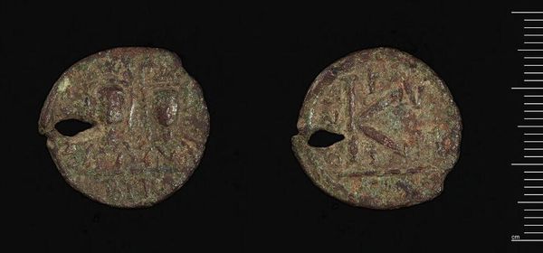 Curator: This is a Dodecanummium of Herakleios, struck in Alexandria under the Umayyad caliph Abd-al-Malik. Editor: Its patina whispers of age, doesn’t it? The verdigris accents are like tiny emerald jewels on a bronze canvas. Curator: Indeed. This coin represents a fascinating transitional period, reflecting the economic and political shifts as the Umayyad Caliphate consolidated power in the region. Editor: It's a humble object, really, yet charged with history. I imagine countless hands have touched it, each leaving a faint echo of their own story. Curator: Precisely! Coins were potent tools of communication, used to project imperial authority and disseminate political messages. Editor: It makes me wonder, what did it buy? A loaf of bread? A song? Dreams, perhaps? Curator: The coin reminds us that art, even in its most utilitarian forms, is always embedded within a larger social and political context. Editor: Right! And that tiny bronze disc whispers of forgotten empires. A perfect reminder of just how much stories an artwork can hold.