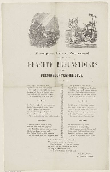 This print, made in Amsterdam in 1857, portrays street sweepers at work. Its anonymous maker utilized the relatively inexpensive process of letterpress to create the image and text, which include a poem wishing fairgoers well. Consider how the printing medium itself shapes our perception. Because the image could be reproduced relatively quickly and cheaply, it speaks to a broad audience rather than an elite one. The very texture of the print, created by the pressing of type onto paper, conveys a sense of everyday life. The act of printing here isn't just a means of reproduction; it's a direct engagement with the social fabric of Amsterdam. The labor of the street sweepers, memorialized through this printed image, gains a kind of permanence. By focusing on the material and the making, we recognize the significance of even the most modest of objects. They’re not just images, but artifacts embedded with meaning about work, class, and community.