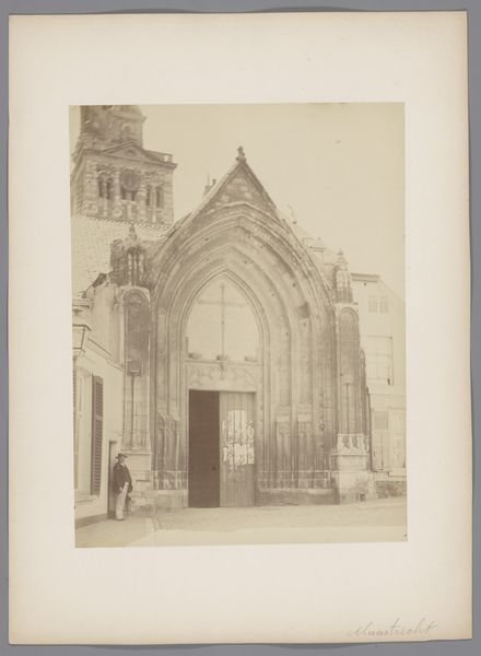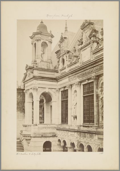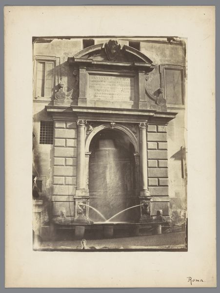 Editor: This gelatin silver print, taken by Paolo Lombardi around 1875-1890, depicts the Torre del Mangia in Siena. The sepia tone lends a sense of antiquity, and I'm immediately drawn to the textures of the stone. What strikes you most about this photograph? Curator: Considering the materials, I find myself pondering the labor and social context of this photograph. The choice of a gelatin silver print, popular during that period, implies a certain level of industrialization in photographic production. The subject too—the fountain, situated in what looks like the public square of Siena, conveys to me how a culture’s visual icons were commodified through photographic reproduction, even then. Editor: So, are you saying that the photograph itself becomes a product reflecting the way Italian Renaissance icons were consumed? Curator: Precisely. We often focus on the artistry, and of course, there’s Lombardi’s framing to consider, but let’s not forget the materiality and its inherent social implications. How would this photograph have been distributed? Who could afford such a print? This work presents as a token for middle class consumers, suggesting travel and taste in the late nineteenth century. Editor: That's a perspective I hadn't considered before. I was more focused on the photographic qualities, like the play of light and shadow, which seem to emphasize the architectural details. Curator: And those are important too, but think about the means of capturing that light and shadow, and the accessibility of the image, then and now. That's what reveals the underlying narrative about labor, value, and cultural consumption. Editor: It's fascinating to think about the photograph not just as a representation, but as an object with its own story about production and consumption tied to the labor and cultural economy of its time. Thanks for this new approach! Curator: My pleasure, seeing art this way reveals complex aspects of its value!