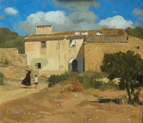 Elin Danielson-Gambogi made this oil on canvas painting, Benvenutis Hus, at an unknown date. It’s like a snapshot of a sun-drenched afternoon, where the light itself seems to be the main character. The wall on the left is just gorgeous, isn’t it? It's not just a flat surface, but a playground of texture. You can almost feel the roughness of the plaster and the way the light catches on it, while the color shifts from warm yellows to cool grays. It gives the painting such a real sense of depth. I wonder what kind of brush Danielson-Gambogi used to create that surface? The whole painting has this very personal feeling. The way she handled the paint is reminiscent of artists like Camille Pissarro, who were interested in capturing the immediate impression of a scene, embracing the idea that art is an ongoing conversation, an exchange of ideas across time, always open to new interpretations.