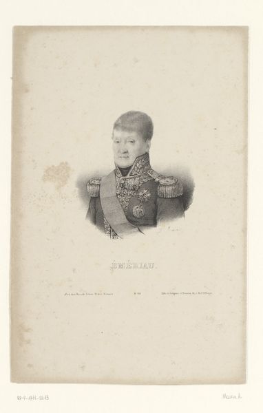 Editor: This is Antoine Maurin's "Portret van Joseph Collett" from 1836, held at the Rijksmuseum. It’s an engraving, so a print. What strikes me is how stiff and formal the portrait feels, even the details in his uniform seem to add to that sense of rigidness. What do you see in this piece? Curator: The stiffness you perceive, is actually carefully constructed to project an aura of power and authority. Look at the details within the image—the elaborate embellishments on his uniform. These aren't just decorations, they’re potent signifiers of rank and accomplishment, meant to be ‘read’ by the viewer. Consider the sitter, Joseph Collett, the context in which the portrait was made – early 19th century – and how individuals in positions of authority needed to project their power. Do you think this image is communicating that clearly? Editor: I guess I do see that. It is a little intimidating now that I am looking at the symbols as part of an intention, rather than just decorative elements. How would people viewing this image during that period see this? Curator: They likely would have understood the visual vocabulary immediately. Decorations were often tied to specific achievements or orders, acting like visual shorthand. Moreover, they would likely reflect on France’s legacy during that era. Such images served as powerful tools of cultural memory. Does knowing this historical context influence your understanding? Editor: Absolutely, it transforms my interpretation! I'm struck by how seemingly small visual details can carry so much cultural and historical meaning. I see how we interpret those cues, sometimes unconsciously. Thanks for sharing this view. Curator: And thank you for your insight; your fresh perspective reminds us to look closely at the images we take for granted. Every detail matters.