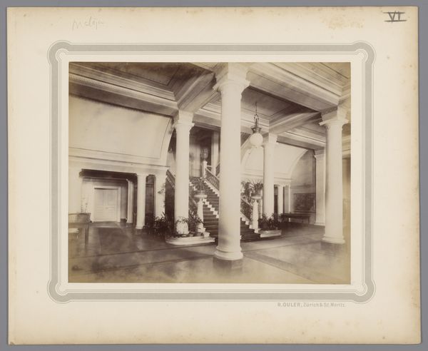 Curator: What strikes me immediately is this quiet, almost melancholic mood—the gray skies reflected on the water. It's a very subtle and affecting piece. Editor: Indeed. We're looking at Jakob August Lorent’s "Venice, View of S. Giorgio Maggiore from the Doge's Palace," an albumen print created around 1862. Its physical presence on paper truly amplifies these nuanced atmospheric qualities. Curator: It's interesting how he's framed the view through the architecture of the Doge's Palace. The columns and arches become a filter, adding a layer of complexity. Almost as if Lorent wanted to depict two distinct but interconnected planes: the ornate detail in the foreground juxtaposed against the more natural scenery that unfurls in the background. Editor: Absolutely. That architectural frame invites a comparative structural analysis. Note how the foreground detail, dense with form, ultimately directs the eye towards that distant point of focus: the island. It's an effective means of structuring the visual field, establishing visual relationships. Curator: I keep coming back to that water... you can almost smell the salt and humidity of the lagoon. And the softness of the focus only reinforces the emotional impact. Editor: An insightful observation. Given that this is a photograph, we might reflect upon the capacity for such mechanical means of production to nonetheless provoke sensory affect, the sense of 'being there', the emotional residue of human experience. Curator: Perhaps that’s what Lorent was aiming for. More than a literal depiction, this work functions as an evocation—almost akin to the poetic distillation you often find in a sonnet, rather than a novelistic telling of events. Editor: Indeed. In carefully orchestrating visual architecture, he moves beyond the mere representation and towards... dare I say... art. An interplay between objectivity and something…far more lyrical. Curator: A poignant perspective. Viewing this again after our chat, I appreciate it now on a different level, as an image which conveys a powerful atmosphere but relies on structuralist relationships. Editor: And that delicate balance—the technical, and that elusive emotional depth—is where the true magic lies. A photograph that transcends its medium.