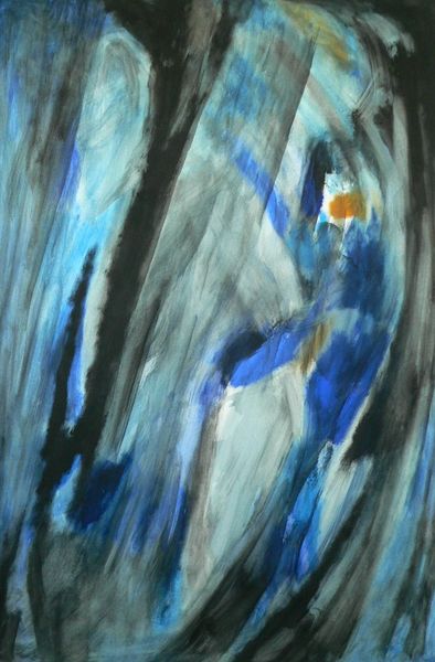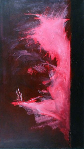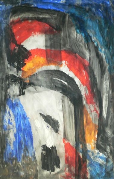 Curator: This painting, titled "Untitled", by Luigi Guardigli is an exploration into the Abstract Expressionist style. Though undated, its visual language clearly places it within the modernist exploration of form and abstraction. The medium here is acrylic paint. What are your initial impressions? Editor: Dark and rather turbulent, wouldn't you agree? The aggressive brushstrokes are almost slashing across the canvas, with hints of blue and red struggling to emerge from this field of darkness. It feels...restless. Curator: Indeed. I see a potential symbolic echo of ancient myths where light battles against the darkness. The central, diamond-like shape could even represent a soul striving for clarity amidst chaos, a timeless human struggle depicted in abstract terms. Editor: Hmm, perhaps. My take is that the dynamic is more self-contained. Observe how those lines build up tension, intersect, create and dissolve boundaries. The limited palette enhances this dramatic contrast between weighty blacks and fleeting moments of color, notice the texture. Curator: It's interesting that you focus on the visual language— the purely formal elements. I’m drawn to how such dynamic abstraction mirrors interior emotional landscapes and collective cultural narratives surrounding turmoil and transcendence. Consider Jung's theories about the shadow self. Editor: While interesting, Jung's psychology is beyond my formal analysis. From what I see here, it's clear that the materiality— the texture, viscosity of paint, swift gestural lines— functions structurally to articulate an almost violent sensation of collapse or deconstruction. It creates an unsettling viewing experience, doesn't it? Curator: I'd argue there is potential catharsis here. But regardless of interpretation, this is a remarkable artwork offering insights into both the personal and universal search for meaning. Editor: Well said. It’s also quite exciting to appreciate the tension, even dissonance, between its raw materiality and inherent formalism.