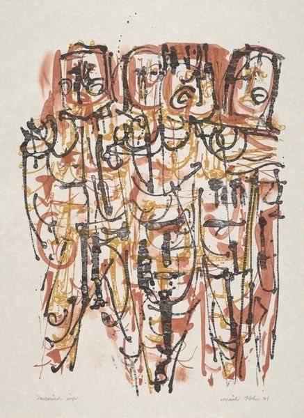 Saul Steinberg made this piece, Subway, on paper sometime in the mid-twentieth century. The colors are dusty and muted, kind of like the atmosphere in the subway itself, smudged with charcoal, crayon, and a little watercolor maybe. The image is built up from different marks, it's all about process, the pushing and pulling of the medium across the page. Like in those red shoes, for instance, awkwardly drawn and filled with color, or the different heads piled on top of each other. It's like a quick sketch, full of hesitation. The texture of the paper really comes through and the different layers overlap. But he still lets the ground come through in places. It reminds me a little of Red Grooms with the caricatured and exaggerated figures. And you know, it makes me think about how our experience of public spaces is always mediated through the weirdness of our own perception.