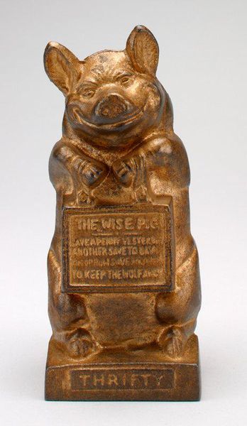 Curator: Immediately striking. There's a captivating presence emanating from the object, an earthy, muted quality. Editor: Indeed. What we have here is a cast metal still bank dating from roughly 1910 to 1925, attributed to John Harper & Company, Ltd. It carries the contentious title “-Golliwog- still bank” and it resides here at the Minneapolis Institute of Art. Curator: The materiality speaks to a particular era, and there’s something wonderfully basic about its construction— a weightiness implying solidity and permanence that directly counters its more transient and problematic place as a token of cultural representation. Editor: It’s impossible to engage with this piece without acknowledging the charged history of the “Golliwog” figure. Originally appearing in children's literature, it soon became a prevalent and highly offensive caricature, laden with racist connotations deeply embedded in colonial narratives and minstrelsy. Curator: Absolutely, and that historical context is key. To analyze it, one must grapple with how this object, ostensibly innocuous as a child’s coin bank, participated in the broader cultural machinery of racial stereotyping and discrimination. Editor: From a formal perspective, however, the simplicity of the sculpture’s contours is noticeable. The large eyes and exaggerated lips underscore the distorted portrayal of Black people pervasive during that time. It’s a blatant, almost primitive execution, reinforcing harmful stereotypes through visual exaggeration. Curator: Precisely! Its very existence as a commonplace object – something children would interact with daily – highlights the insidious way such stereotypes were normalized and perpetuated in society. Its artistic merit is secondary to the cultural damage it signifies. Editor: It invites a certain cognitive dissonance though. One recognizes the artistry present, the crafting that occurred to form the metallic object; the smooth finish and subtle gleam across its form, all juxtaposed with the piece’s controversial subject matter. It creates a visual and conceptual tension. Curator: I leave reflecting how art acts a persistent witness, recording not just aesthetic developments but also society's deep-seated prejudices and ongoing struggles for racial equality. Its existence now acts as a solemn reminder of our shared history and hopefully the vigilance we must observe. Editor: It is certainly impossible to look at without experiencing conflict, both with the image and how it still circulates and continues to shape contemporary discussions about racial representation and art’s complicated relationship to social change.