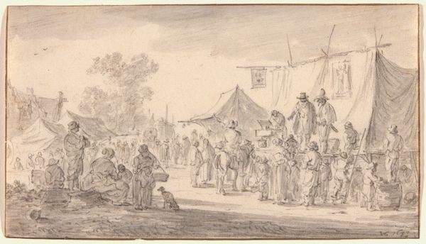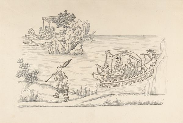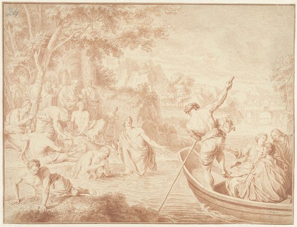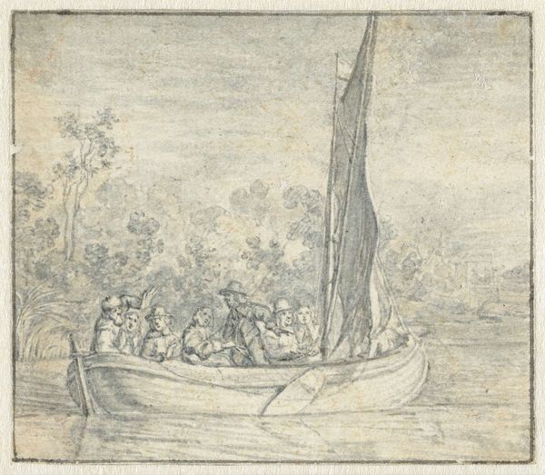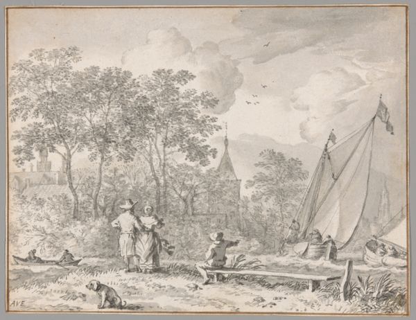 Claude Simpol created this ink drawing, July: Amusements on the Water, in France during the late 17th or early 18th century. The image captures a leisurely scene, likely depicting members of the French upper class enjoying a boat ride. But what does it tell us about the broader society of its time? The drawing provides insights into the culture of leisure and social hierarchy. The presence of what appears to be a decorated boat with musicians, suggests the importance of entertainment. The artist uses visual codes to create meaning here; the clothing and activities of the figures suggest an elite social class, reinforcing notions of social distinction. It is interesting that the artist included swans, which were often associated with wealth and aristocracy. To fully understand this work, scholars might delve into primary source materials. Records of court life or popular entertainments could shed light on the social context of the time. This drawing is a valuable document, reflecting the values, customs, and pastimes of a particular social class in early modern France.