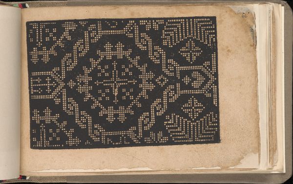 Curator: What strikes me first is the paper itself; you can almost feel the texture of it just by looking at it. It gives such a sense of antiquity. Editor: Indeed. What we are looking at here is page 45r from the "Schön newes Modelbuch," or "Beautiful New Pattern Book," created in 1608 by Sigismundus Latomus. It’s a woodblock print on paper and currently resides at The Metropolitan Museum of Art. These books were, essentially, the Instagram of the 17th century for needleworkers! Curator: Oh, fascinating. I see geometric patterns. Squares, diamonds, rendered in a very specific style. What do you read into those forms? Editor: The geometry is so precise, rigid even, yet something about it still speaks to a sense of harmony and balance. These weren’t simply decorative motifs. They carry the symbolic weight of order in a chaotic world; domesticity, certainly; perhaps even protection against ill fortune in the minds of those stitching them into clothing or linens. Curator: You're right. The symmetry, in its cultural context, is reassuring. The "Modelbuch" was very much part of the burgeoning print culture and fashion revolution that shaped the aspirations of those in the middling ranks of society at the time. They desired the sartorial elegance displayed by elites. The books provided a form of cultural instruction. Editor: And you can imagine the artisan or household member poring over the design, adapting it to their own vision, imbued as they were by shared cultural imagery. These motifs connect them, across time. I would be curious to look at how motifs in different cultures evolve—especially ones using textiles. Curator: And the choices behind that process become part of the object’s social and personal biography. It stops simply being fabric, becoming cultural expression. I'd love to compare it to contemporary uses of design. Editor: Me too! Looking at this piece, I appreciate the deep roots of seemingly simple patterns and how powerful they can be as reflections of history and imagination.
