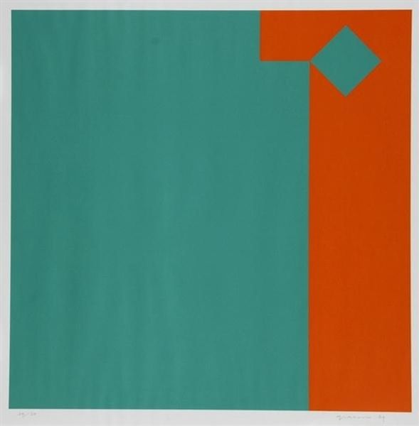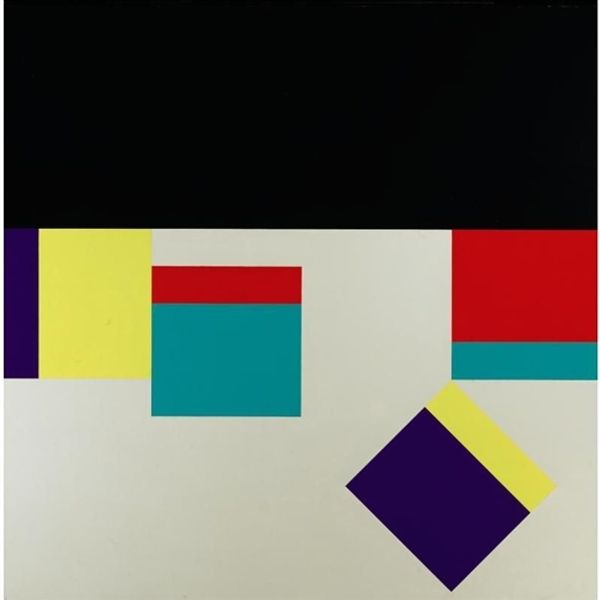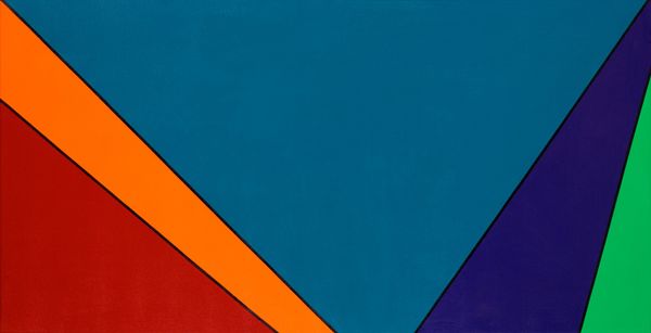Olle Baertling created ‘Vebama’ using oil paint on canvas. The artwork consists of geometric shapes painted in vibrant colors; green, purple, teal, and black. What is interesting here is the way the solid planes of color come together. The composition suggests a kind of utopian vision that emerged in the mid-20th century, which was a period of optimism and intense industrial expansion. Looking at the work, you can imagine the smooth surfaces achieved by the paint. The unmodulated color fields were likely made by applying multiple layers, to eliminate brushstrokes, and create a sense of seamless perfection. These abstract works celebrated industrial methods and materials and relied on technical skill. Considering the materials, the repetitive nature and the high level of control required, ‘Vebama’ challenges traditional distinctions between fine art and design. It pushes us to consider the importance of making, and the social context in understanding art.
