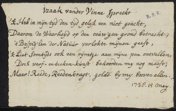 This printed announcement from 1721 informs the public of the death of Jan van der Vinne, a man from Haarlem. The stark black letters against the plain background immediately evoke the somber mood associated with death. Consider the formal arrangement of the text, recalling ancient Roman inscriptions. The use of capital letters, and the structured layout command respect and solemnity. This visual language shares similarities with memorial stones and epitaphs found throughout history. Even the letterforms, meticulously chosen, carry echoes of mortality. The act of printing itself speaks volumes. Mass dissemination is a ritual to ensure that the memory of the deceased is preserved across the community, reflecting humanity's ongoing struggle with mortality. The announcement reminds us of our shared fate. The psychological impact of such pronouncements has a deep, subconscious effect, serving as a stark reminder of the fragility of life. The image reveals the cyclical way symbols of remembrance recur and adapt, illustrating our perennial need to confront and process death.
