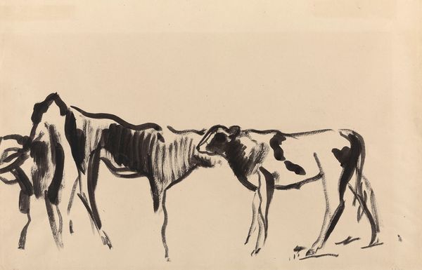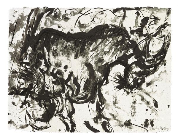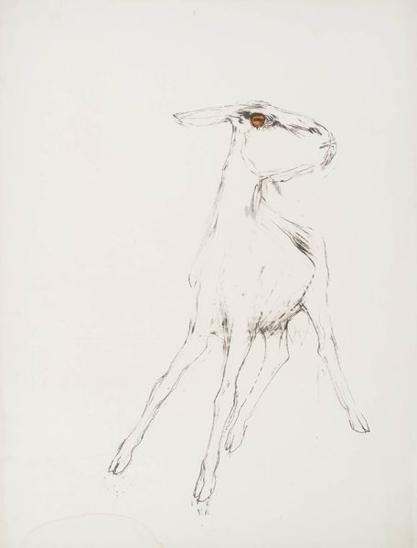 Curator: Elisabeth Frink’s "Small Boar" leaps right out at you, doesn’t it? What a creature. Editor: Immediately, I'm struck by the texture – you can almost feel the roughness of the paper and the immediacy of the printmaking process. Curator: It feels so spontaneous, almost feral! Frink clearly wanted to capture the raw energy of the animal, that lean muscle rippling beneath the surface. Editor: Absolutely. And look at the economy of line – the material constraints force her to distill the subject to its bare essence, the print itself becoming almost like a primal record. Curator: Which, in turn, speaks to a vulnerability I think, doesn’t it? Underneath that wildness. It reminds us we are all animals, trapped in our skins. Editor: Yes, the physicality of the printmaking process becomes a metaphor. From the hand of the artist to the etched plate, it mirrors the animal's own struggle for existence. Curator: It's a tender portrayal, ultimately. Something fragile about it. Editor: Indeed. A powerful testament to the labor and the life embedded in both art and nature.