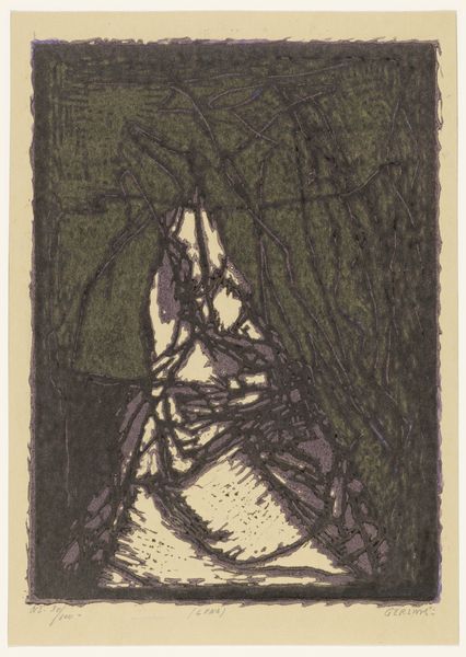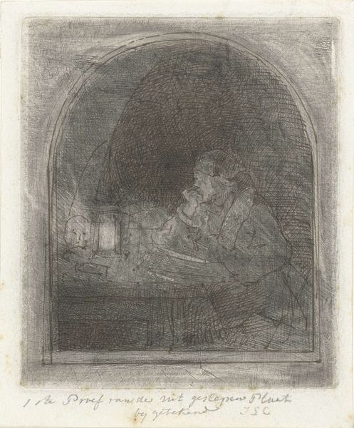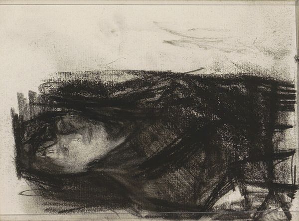 Editor: Here we have Anne-Louis Girodet’s charcoal drawing, "Agnès Entering a Grotto," created around 1790 to 1800. It's mostly tonal, creating an almost dreamlike feeling with the contrast of light and shadow. The figure is compelling. What do you see in this piece, focusing on its formal qualities? Curator: The power of this work resides significantly in Girodet's strategic deployment of chiaroscuro. Observe how the artist articulates depth and volume. The rendering of Agnès is achieved through a delicate balance of shadow and highlight. The composition subtly juxtaposes the smooth texture of her garments with the rugged, almost chaotic strokes delineating the grotto. This tactile contrast is essential, inviting scrutiny of its semiotic construction. Editor: So the grotto itself isn't just a background element; it contributes to the meaning through its contrast with Agnès? Curator: Precisely. Note the dynamism within the seemingly confined space; it’s less about representing literal space than conveying a state of mind. Consider also the economy of line. Girodet isn't aiming for photographic realism; instead, the charcoal evokes mood and character, primarily through suggestion and implication. Does the orientation of Agnès indicate perhaps a certain humility, contrasting the vastness of the dark shaded void? Editor: That's an interesting point. It makes me reconsider how the artist uses darkness to shape the narrative. Curator: Absolutely. The drawing challenges our presuppositions regarding form and content, particularly within a historical context defined by revolution and upheaval. The artist uses the materiality of charcoal to probe deeper and project the sublime state within. Editor: I appreciate your insights on how the interplay of form, texture, and contrast contributes to the overall narrative. It’s a valuable exercise in close looking. Curator: Indeed. The careful examination of Girodet's artistic choices unveils his method, offering a nuanced view of Romanticism’s fascination with emotional depth.