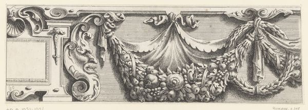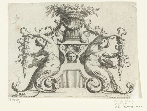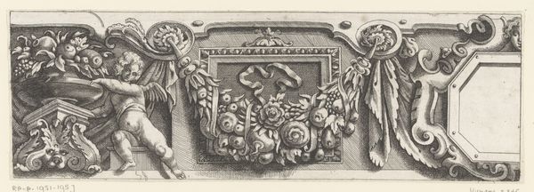 Editor: This is an engraving from before 1689, housed in the Rijksmuseum. It's called "Fries met twee putti die portretbuste tekenen"— "Frieze with two putti drawing a portrait bust." It depicts two cherubic figures sketching a bust, surrounded by classical motifs. What can you tell me about this piece? Curator: Considering the time period and the medium of engraving, let's look at the context of printmaking as a form of reproduction and dissemination of ideas. How does this image participate in the circulation of classical ideals? The very act of the putti drawing points to artistic labor. Editor: So, the material - the engraving - connects to the content - these putti creating art? Curator: Precisely. Engravings made art accessible to a wider audience. This print democratizes classical art. Consider also, how this "anonymous" print challenges our notions of the art market; does mass reproduction alter our relationship to concepts such as authorship and ownership? Editor: I hadn't thought about the relationship between access and authorship before. Curator: And think of the labor involved! Engraving is a skilled craft, meticulously transferring an image onto a plate for reproduction. It blurs the lines between high art and skilled craftsmanship. It requires specific material skills with metal, tools, and ink, to produce this “artwork." Editor: Right, it makes you wonder about the engraver and the process, beyond just the final image. It’s more than just decoration. Curator: Exactly. The act of producing it reflects cultural values around labor, skill, and accessibility within artistic production at the time. We have looked beyond simply aesthetics.