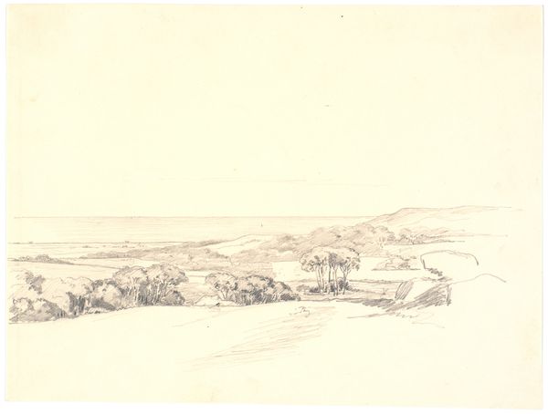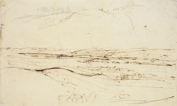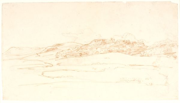 Dankvart Dreyer made this landscape study with pen and brown ink, using paper as his support. The strokes vary from light to heavy, with thin lines depicting clouds. The process of drawing, direct and immediate, creates an intimate connection between the artist and the landscape, resulting in a scene that feels both observed and interpreted. Drawing has historically been seen as a preliminary medium, a sketch for a larger work. Dreyer's choice to create a finished piece using these materials challenges the hierarchy between sketch and finished painting. The simplicity of the materials highlights the artist's skill and the work involved in capturing the essence of the landscape. The pen lines create form, depth, and texture, all with minimal means. This work celebrates the beauty and power of the landscape through the simple, yet skilled, act of drawing. It reminds us that the value of art lies not only in the complexity of its materials but also in the artist's vision and the labor invested in its creation.