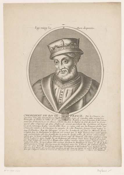 Curator: Here we have an engraving titled "Portret van Francesco Bussone da Carmagnola". It was created between 1549 and 1575. Editor: It has a severe formality. That’s my first impression; there’s something so austere about the rendering in black and white, as if stripped of all unnecessary frills. The subject’s gaze is… direct, but not inviting. Curator: Indeed. The severe tone resonates well with the Mannerist style. Notice how the engraver used fine, parallel lines to create a sense of volume and texture? Look at the subject's hat, how the light catches those folds; each meticulously carved line contributes to the overall illusion. Editor: It’s impressive technically, but who exactly was Carmagnola, and why immortalize him this way? This image speaks less of beauty and more of power, or at least, the desire to project an image of authority. Curator: Francesco Bussone, known as Carmagnola, was a prominent condottiero, a military leader, during the early 15th century. His life was filled with political intrigue; serving both Venice and Milan, and ultimately being executed for treason. Editor: So the portrait itself becomes a piece of political propaganda. I'd be interested to know more about the circumstances surrounding the work's commission and intended audience. It makes you consider: who commissioned this and what did they wish to convey about Carmagnola, more than a century after his death? Curator: Precisely. One can see, from an aesthetic perspective, how the tight composition and meticulous execution reinforce a sense of controlled power, ideal for memorializing such a controversial figure. The frame is also very elaborate. Editor: Which serves to emphasize the importance of the portrait within a historical context. The way his face has been shaded— it suggests a shrewd intelligence, and perhaps a hint of ruthlessness necessary for survival in his time. But, without further context about patronage, these remain conjectures based on formalist analysis. Curator: I concur; however, by examining its formal qualities – its lines, textures, composition – we gain a new understanding of its social and historical implications, allowing us to look past mere representation and consider underlying intentions. Editor: Absolutely. It makes you contemplate the layers that can construct historical narratives. This engraving isn't just an image; it is an embodiment of sociopolitical ambition.