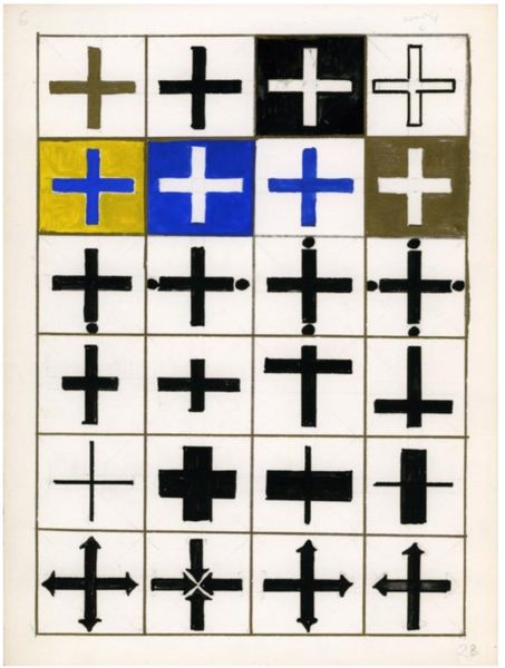 Editor: This curious piece is "Metaphysical Cube of Aksinin," a 1982 drawing by Oleksandr Aksinin rendered in ink. It has an almost devotional feel with the cross-shape, yet also feels like an exploded diagram of something... technological? What should we be paying attention to in this intricate work? Curator: The material execution itself, the meticulous rendering in ink, speaks volumes. Consider Aksinin's socio-political context: Ukraine under Soviet rule. The act of painstakingly creating this intricate drawing—the labor invested—becomes a subtle act of resistance, a personal assertion in the face of enforced conformity. The tools available to Aksinin at the time heavily influenced the type of mark making. It becomes a political statement through artistic action. Editor: So, you're saying the very process of creating something like this within that system has significance. How does the design – all those little pictures in boxes, affect the meaning? Curator: Exactly. And the imagery! Are these symbols of everyday life, meticulously catalogued? Religious icons, subtly subverted? The juxtaposition of the geometric grid with these ambiguous symbols prompts us to consider the artist's, and indeed the individual’s, attempt to find order and meaning within a system that seeks to define and control. How would accessible art materials shape similar efforts today, and what socioeconomic forces drive such creation? Editor: I see now. It’s not just *what* he drew, but *how* he made it, that carries so much meaning, a fascinating window into a particular time and place. Curator: Precisely. By focusing on the material and the means of production, we move beyond a simple interpretation of imagery and access a deeper understanding of the artwork’s cultural and political weight. The very limitations became the fuel for creation and quiet protest.