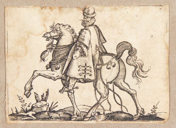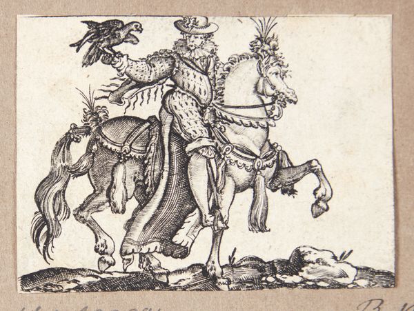 This small engraving by Martin Pleginck shows a knight brandishing a club, mounted on a rearing horse. The image recalls the medieval symbol of the miles christians, the Christian knight, and the iconography of the equestrian ruler. The rearing horse— a symbol of power, control, and virility— echoes classical depictions of emperors on horseback. We see this pose repeated through centuries, from ancient Roman statues to Renaissance paintings. Even the knight's club, a seemingly crude weapon, carries echoes of the hero Hercules and his legendary strength. Such symbols never truly disappear. They resurface, transformed, in new contexts, carrying layers of accumulated meaning. Here, the rearing horse and the knight's commanding gesture tap into a primal desire for leadership and control, resonating deeply within our collective psyche. The image reminds us that history is not linear; rather, it is a continuous, cyclical process of remembering, adapting, and transforming.
