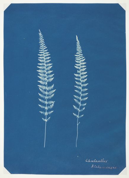 This cyanotype presents the impression of a fern, captured through early photographic techniques, revealing more than just botanical detail. The fern, a motif deeply entwined with notions of humility and sincerity, emerges from the dark ground. Consider how, since antiquity, ferns have been linked to concepts of secrecy and shelter, their presence a subtle nod to hidden knowledge. Think of the Victorian era, when ferns became emblems of both aesthetic appreciation and covert communication. The fern in this work echoes the vanitas tradition where symbolic plants embody our delicate mortality, reflecting on life's ephemeral nature. Here, the fern exists as an invitation. It pulls us into an introspective space, a silent dialogue between nature and self, where simplicity speaks volumes. The echo of the forest whispers through it, and continues to grow and change as time passes.