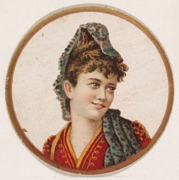 This small, round tobacco card, titled "Woman wearing blue hat with pink ribbons," was produced by Kinney Brothers, a tobacco company. The portrait is defined by a play of circular forms, from the card's perimeter to the soft curve of the woman's cheek. Note the delicate balance between the flatness of the printed image and the illusion of depth. The artist uses subtle shading to suggest the contours of the face, neck and hair, while the overall composition remains decidedly two-dimensional. This tension embodies a broader shift towards abstraction. Furthermore, the woman’s attire, with its vibrant pink and blue hues, serves not only to depict fashion but also to engage with the semiotic language of color. The ribbons and hat, rendered with careful detail, underscore the cultural codes of femininity and luxury. Ultimately, this card is a reminder that even the most unassuming objects can reveal intricate layers of meaning.