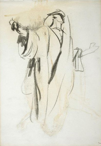 Curator: Looking at these studies is fascinating. These graphite and pencil drawings on paper, created in 1864 by Józef Simmler, are preparatory sketches for his painting, "The Immaculate Conception of the Blessed Virgin Mary." Editor: The immediate thing I notice is the softness. Even in these initial studies, there's a delicate quality to the rendering of the fabric. I find it almost sensual, despite the religious context we know it to have. Curator: Absolutely. As studies, these drawings give us a privileged look into Simmler's process. He wasn't simply trying to capture the likeness, but rather to understand how the material—the drapery itself—would communicate meaning within the finished painting. How it folds, how it catches light... that informs the overall impact. Editor: Thinking about it, the labour is also interesting. To give form and feeling to fabric that has its own inherent structural qualities must have been intensive, an engagement with gravity itself! One wonders what type of fabric Simmler used for the physical sketches? Curator: That is a really good point about the materiality of the actual fabric, particularly for a religious subject matter. But also consider the larger political context—Simmler lived through a period of Polish partitions. Religious iconography was inherently intertwined with national identity, becoming powerful political tools in asserting cultural resilience. Paintings such as this would reinforce social cohesion and shared values. Editor: The religious aspect aside, one can simply marvel at Simmler's technical prowess, a material feat in and of itself. What can feel cold when thinking about faith-based works actually gives way to very fine technique. Curator: I think that ultimately speaks to the dual function art served then, to be beautiful but to also remind audiences what it meant to belong to a certain group, and uphold certain beliefs. The means of its making thus plays a crucial role in helping solidify social ideologies and norms. Editor: It's easy to see, especially in a study like this, how intertwined these spheres actually are, whether religious, historical, material or political!