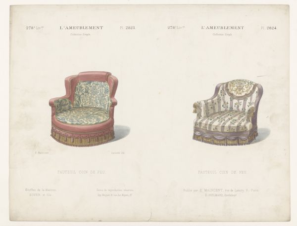 This print from an unknown artist depicts two chairs. The chairs are embellished with floral patterns and tassels, symbols of luxury and status in 19th-century Europe. Consider the recurring motif of ornamentation. This echoes through time, reminiscent of the draped fabrics and symbolic adornments found in ancient Roman portraiture. In both eras, these elements signify power, wealth, and social standing. The tassels in the chairs, much like the laurel wreaths of emperors, are visual cues designed to elevate the subject—or in this case, the object—to a position of reverence. Observe how the floral patterns invite a sense of nostalgia and romanticism. The human psyche often seeks comfort in familiar symbols. The enduring appeal of floral patterns taps into a deep-seated longing for nature, paradise, and an idyllic past. These objects are imbued with the power to elicit emotions and memories and to connect us to a collective cultural consciousness. Such symbols progress in a non-linear fashion throughout history, resurfacing, evolving, and taking on new meanings in different contexts.