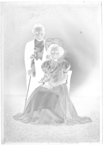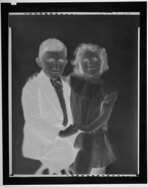Curator: This is an untitled studio portrait by Martin Schweig, currently held at the Harvard Art Museums. What strikes you first? Editor: The bold bow tie! It’s so oversized, almost cartoonish. It feels like a statement. Curator: A statement, indeed. The oversized nature of the bow perhaps symbolizes a flaunted independence. We see this often with portraiture as well. Editor: Right, how does the making of this image relate to societal values regarding relationships, class, or gender? Curator: Given its context, the very act of commissioning such a portrait suggests a desire for upward mobility, a claim on a particular kind of respectability. Editor: So, more than just a picture, it's a material declaration. Fascinating to think about its lasting symbolic weight. Curator: Precisely. It speaks volumes about the era and the couple's aspirations. Editor: I'll definitely be pondering the hidden messages embedded in that striking bow.