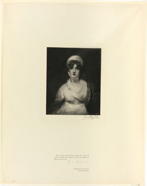 Editor: This is "A Study," a photograph by James Wells Champney from 1901. It's printed, so it exists as an object. I'm struck by the sepia tones and the almost ethereal quality of the portrait. What can you tell me about it? Curator: Considering its materiality and production, we need to consider photography's relatively recent adoption as a medium of artistic expression. Champney, with "A Study," seems to be engaging with Pictorialism, but with a twist. What kind of labor went into creating this image, both in front of and behind the camera? Editor: I see what you mean! The framing is so deliberate, and then it is fixed by photography; labor is needed. So, you're suggesting this transcends a simple portrait and hints at the process of image creation? Curator: Precisely. It's not just about the subject. Think about the developing process at the time: the chemicals, the darkroom, the meticulous work required to achieve this particular soft focus and tonality. Champney made an artifact, challenging photography's inherent mechanical character, wouldn't you say? Editor: Definitely. That makes me look at it in a completely different light. The "craft" element of the darkroom production is very present and significant. I now see this more like a hand-made object using photography and chemistry as instruments for making, rather than an easy and objective mechanical way to capture light. Curator: Yes, we should question how it circulates in society. Was it exhibited? Sold? How was it consumed? These details reveal a great deal about photography's status and Champney's intentions. Editor: Thanks for drawing attention to the labor involved. Now I am paying closer attention to how "A Study" defies categorization: blurring the lines between industry, labor, and high art! Curator: Indeed, seeing art in the framework of its materials and making unveils fascinating insights!