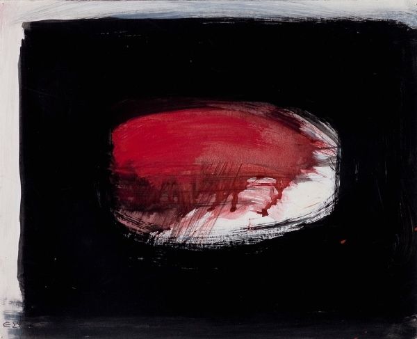 Eugene Brands made this painting, Table with Nebulae, with paint, of course! Looking at the brushwork, you can really see the process of applying paint, of layering and moving it around. It's very direct, not fussed over. What I like most is the thick, opaque paint on the table, all those whites and pinks that make it glow. It's as if the table is illuminated from within. Then there’s that mark in the top right corner, like a swirl of cloud. It’s pretty casual, but makes you wonder about the relationship between the interior and exterior. I mean, is that black all around the table just night? It puts me in mind of another painter, Forrest Bess, who, like Brands, was interested in inner and outer space. Both artists were reaching for something beyond the everyday. And that, for me, is what painting’s all about.
